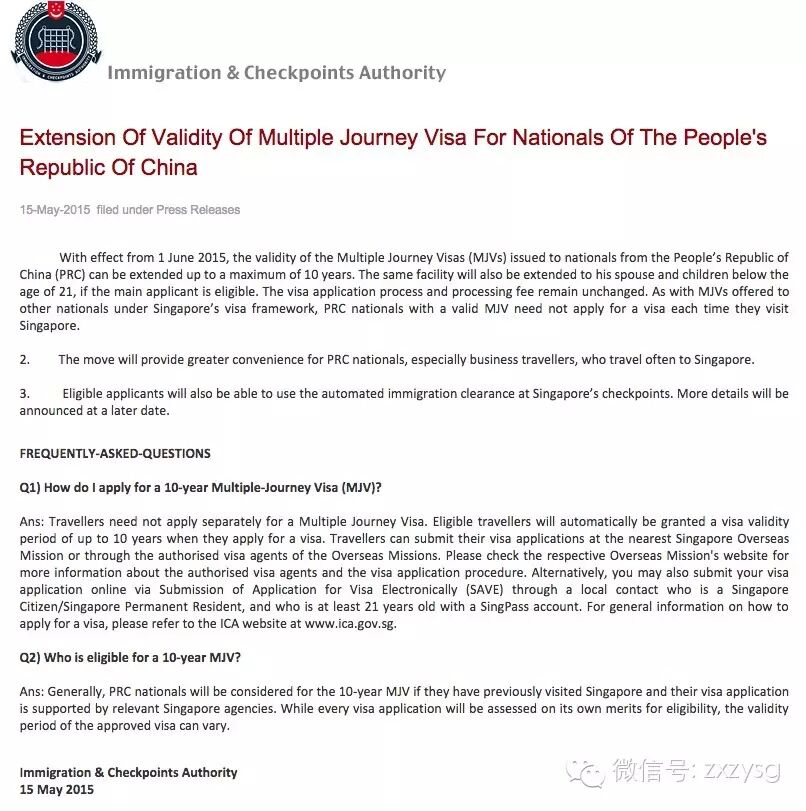新加坡移民局发布消息,持中国护照申请新加坡旅游签证可获得长达10年多次往返!